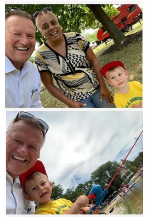 " Cops N’ Kids… A very big thank you to Fawn Funderburg and her family for hosting the annual Cops N’ Kids Fishing Tournament. The day was filled with fun and excitement. Located on their beautiful property at the pond kids partnered with law enforcement officials to learn about fishing and build stronger community relations. Little Bryan and I really enjoyed our time! Thank you Fawn and everyone at Gateway who donate time and treasure for our community."